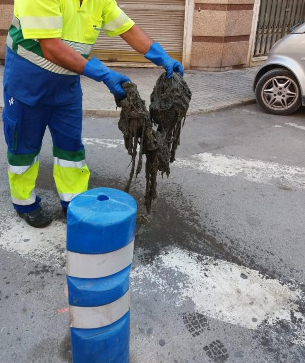 Las toallitas de un solo uso provocan averías y atascos en la red del alcantarillado de Novelda